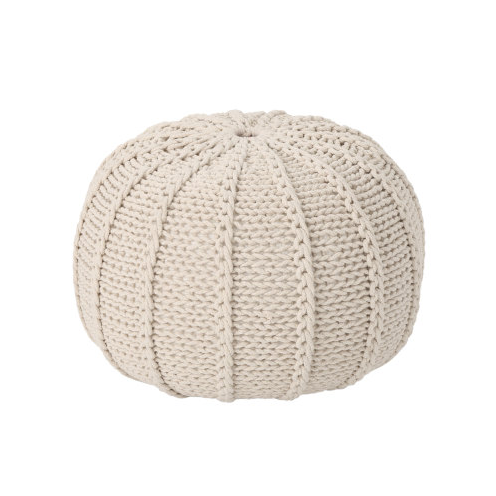 FCJ Bordeaux Knitted Cotton Pouf Beige Modern Adjustable Ottoman/Stool for Bedroom Living Room Home School Removable Feature