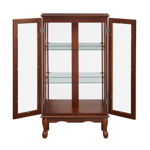 FCJ Lighted Curio Cabinet for Home Bar Tempered Glass Doors Adjustable Shelves Mirrored Back Panel