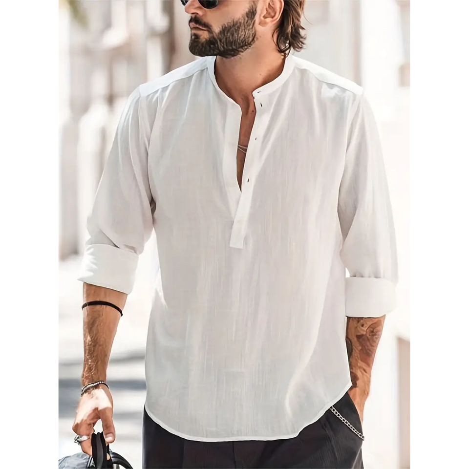 FCJ Men's 100% Cotton Long-Sleeved Breathable Button-Down Shirt Slim Fit Striped Casual Plaid Design Size 6XL