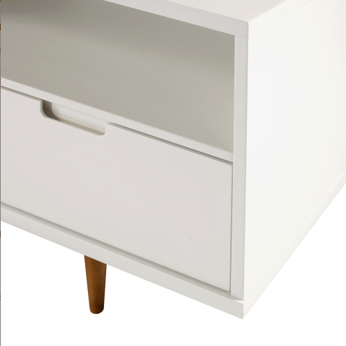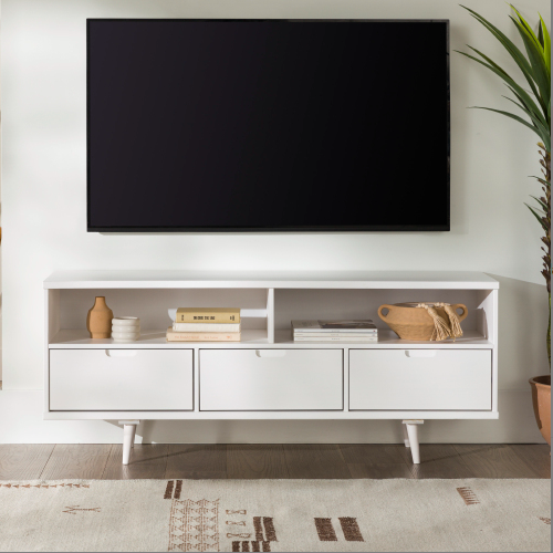 FCJ Mid-Century Modern 3-Drawer Solid Wood TV Console Stand Minimalist White Bedroom Furniture with Glass for TVs up to