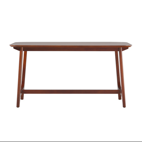 FCJ Mid-Century Modern Dining Table Set Walnut Veneer with Trestle Base and Stainless Steel Legs Assembled & Extendable