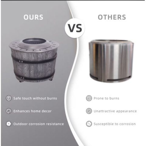 FCJ Modern Outdoor Fire Pit Table with Woody Appearance Smokeless and Fueled by Wood Pellets & Branches