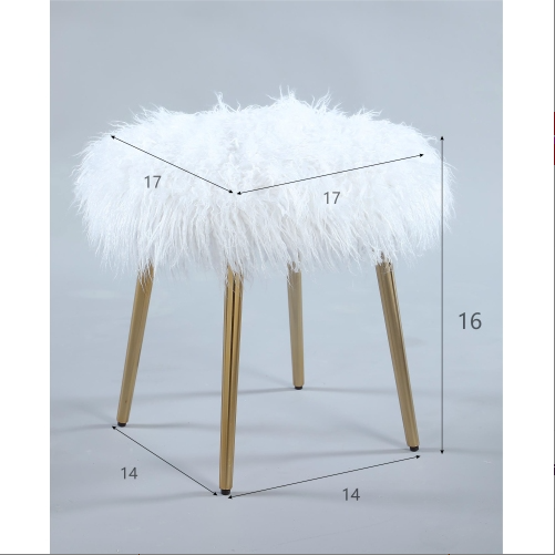 FCJ Ravni Modern Faux Fur Accent Ottoman Stool with Gold Legs Removable & Foldable for Entry Bedroom Warehouse Outdoor Use
