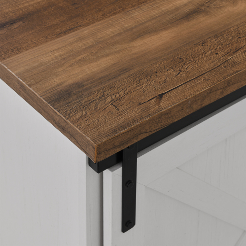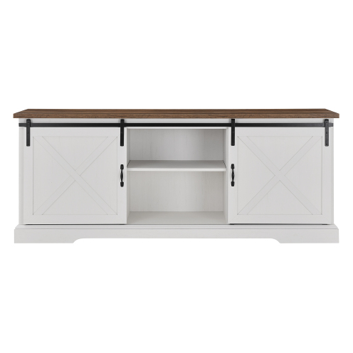 FCJ Rustic Oak Brushed White Farmhouse Sliding X Barn Door TV Stand with Unique Farmhouse Style Design