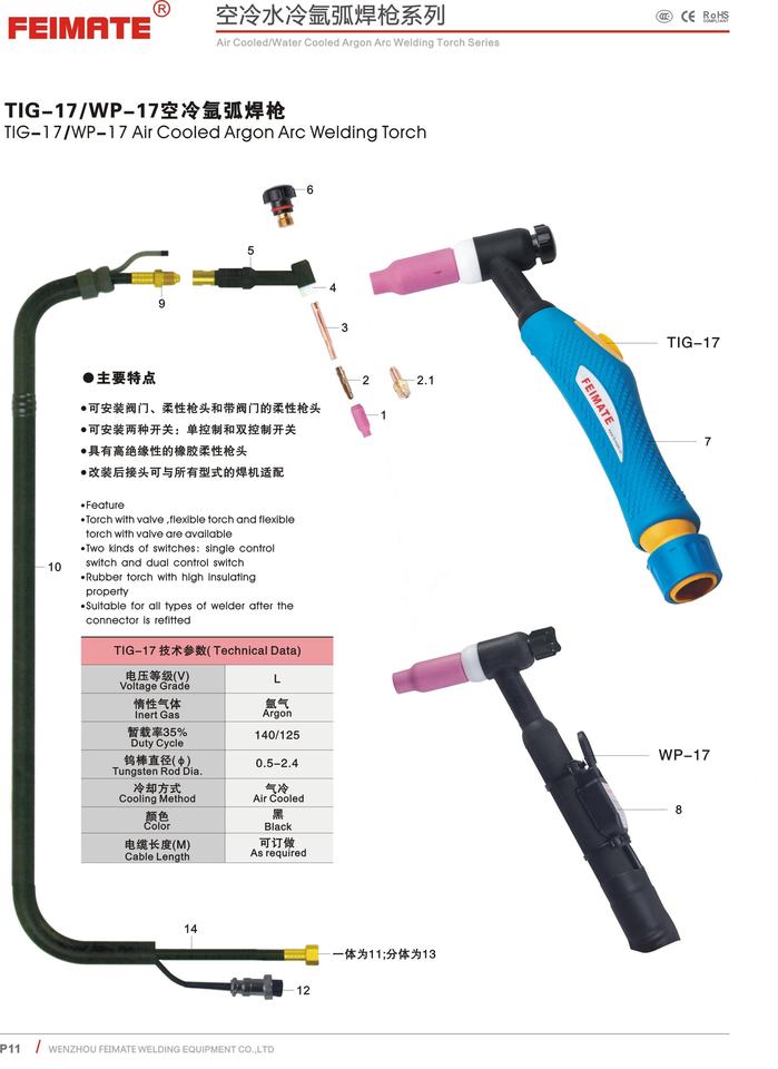 FEIMATE TIG17 WP17 Tocha de solda un arco de argonio resfriado un ar de alta qualidade