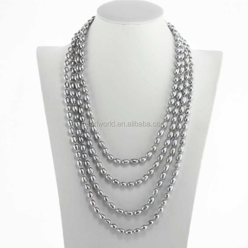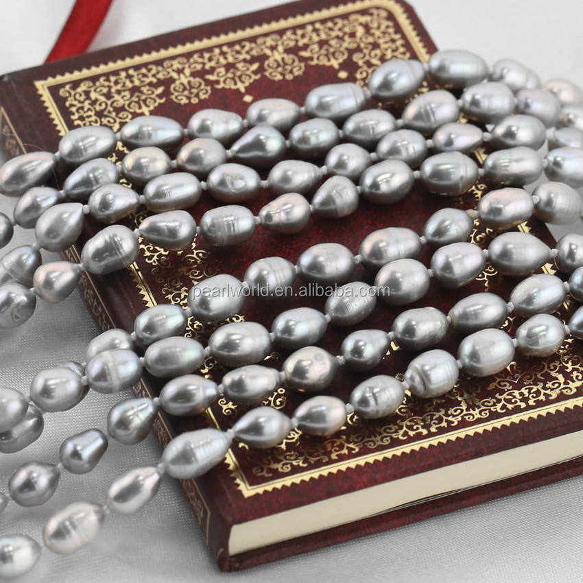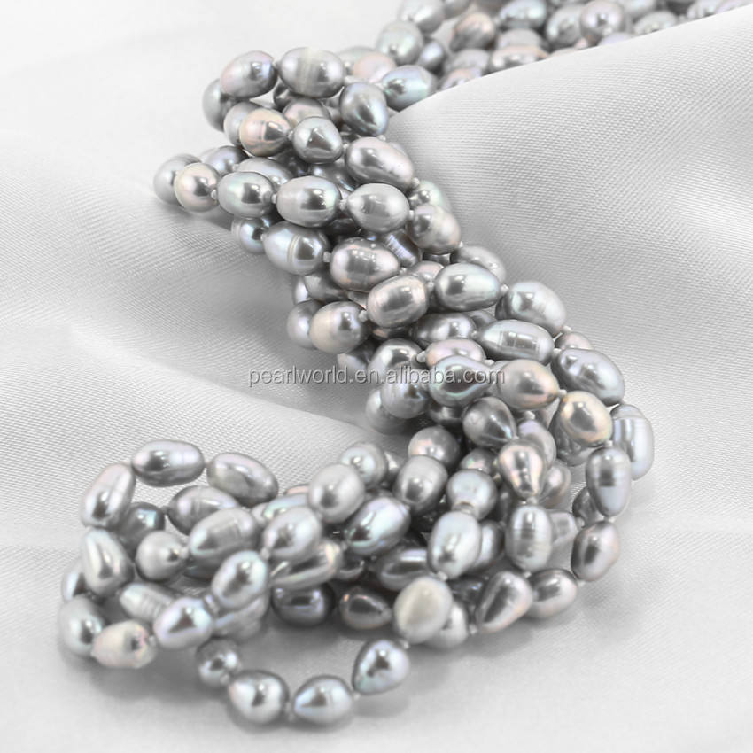 FEIRUN vero e proprio acqua dolce 7-8mm di colore di riso grigio un grado ultimo disegno collana di perle, collana di perle cinesi, collana di perle