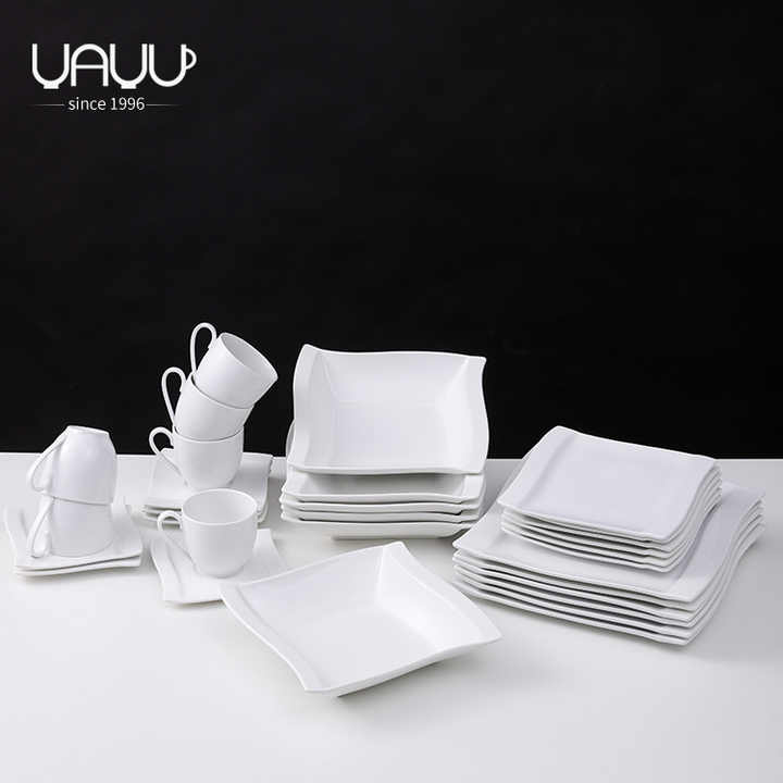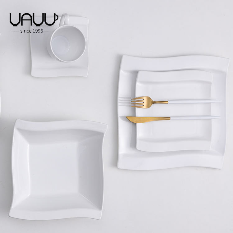 Set da Pranzo in Ceramica Bianca FENN, Design Essenziale, Piatti Quadrati per Ristoranti e Hotel, Alta Qualità da Fornitori Cinesi