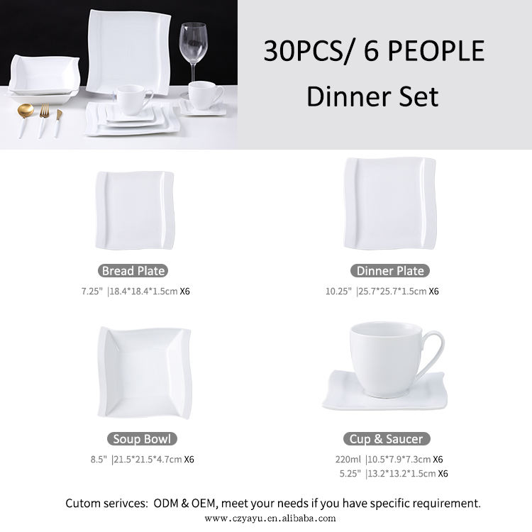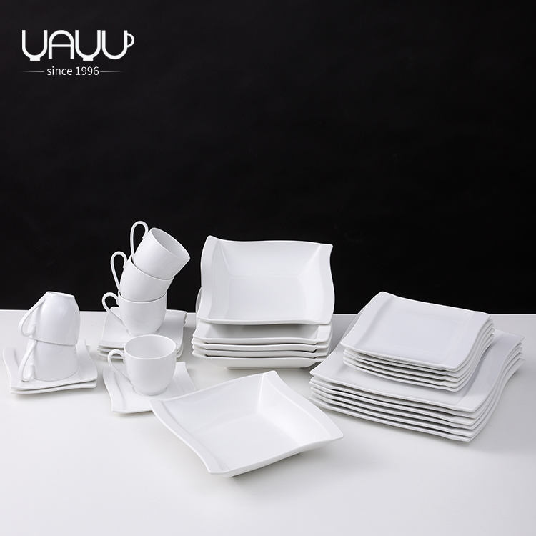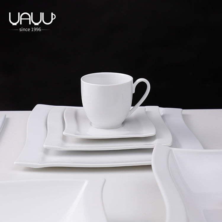 Fornitori della cina di buona qualità disegno conciso ristorante hotel serve quadrato bianco da tavola in ceramica set