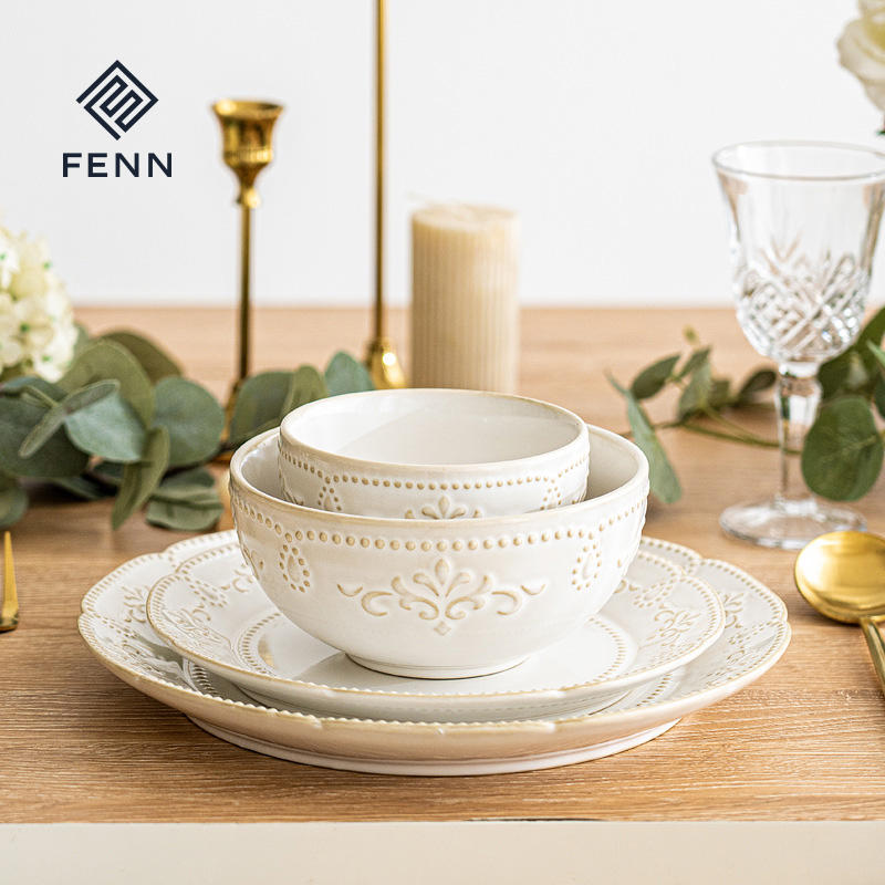 FENN Set di piatti in porcellana premium bianco goffrato, grado A/AB, infrangibili e personalizzabili per ristorazione e matrimonio
