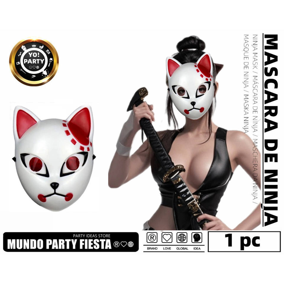 FESTIVE DEMON SLAYER FOX MASK Red LED Plastic PVC Party Accessory for Decorations Product Code #42231
