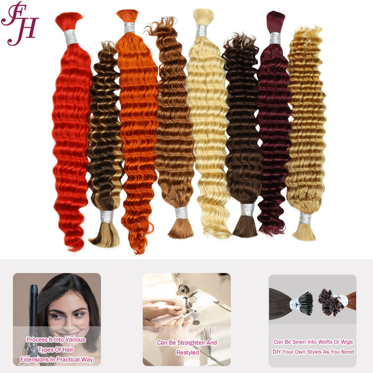 FH Capelli Umani Remy 100% Allineati alle Cuticole, Onde Profonde Arancioni, Grezzi, per Trecce Boho, Senza Trama, Fascio di Capelli Vietnamiti