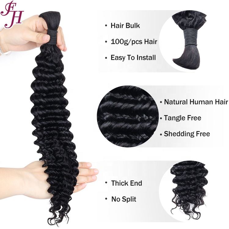 FH Extension Capelli Umani Vergini Non Trattati per Trecce Bulk a Onda Profonda Naturale Stile Boho Senza Trama