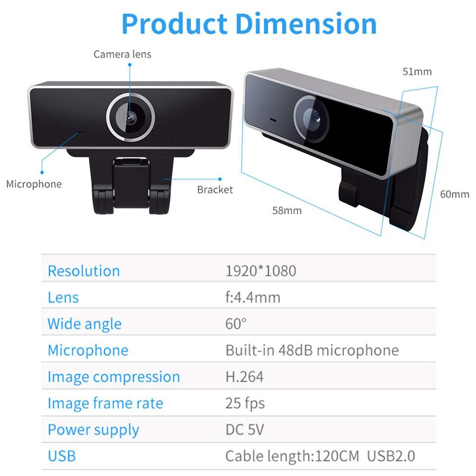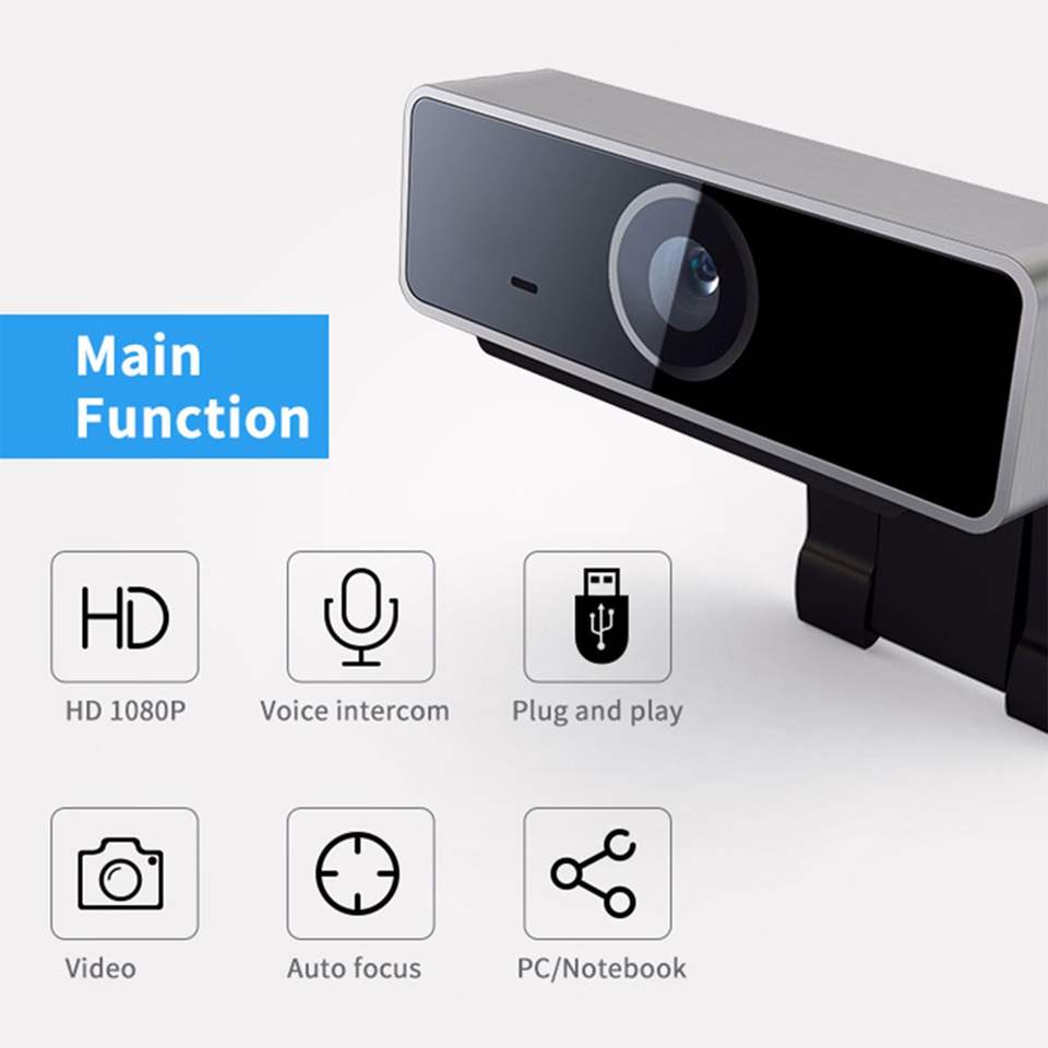 Webcam USB FHD 1080P per PC con Autofocus e Microfono, Grandangolo 60 Gradi per Desktop e Laptop, Ideale per Streaming Live