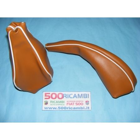 Kit FIAT 500 F L R con Pomello del Cambio OCRA/BIANCO a 5 Velocità, Cuffia Leva Cambio e Cuffia Freno a Mano per Sostituzione Pomello del Cambio