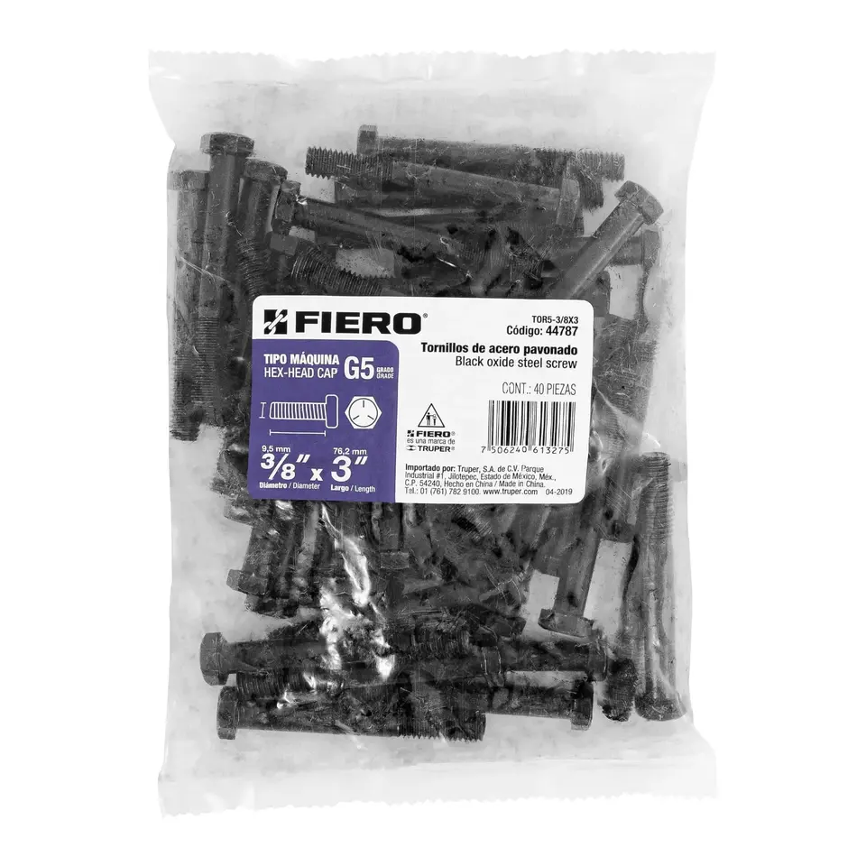 FIERCE 3/8\" X 3\" Grade 5 Steel Screws Box with 3 Units and Bag with 40 Screws