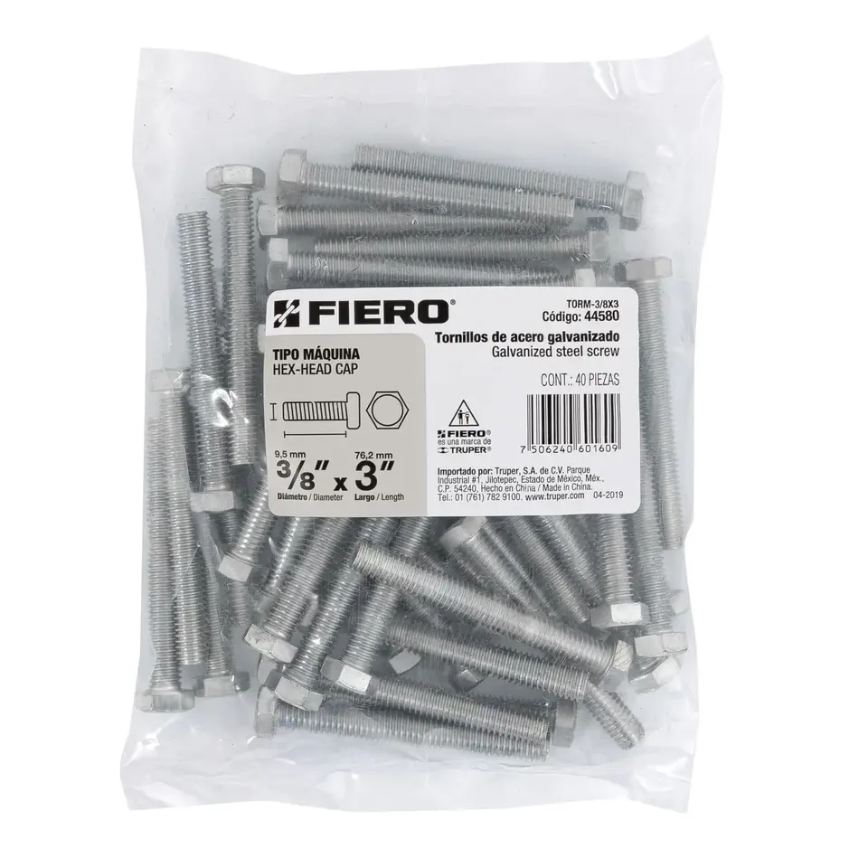 FIERO 40 3/8\" X 3\" Machine Screws Box with 3 Units Bag with 3 Units