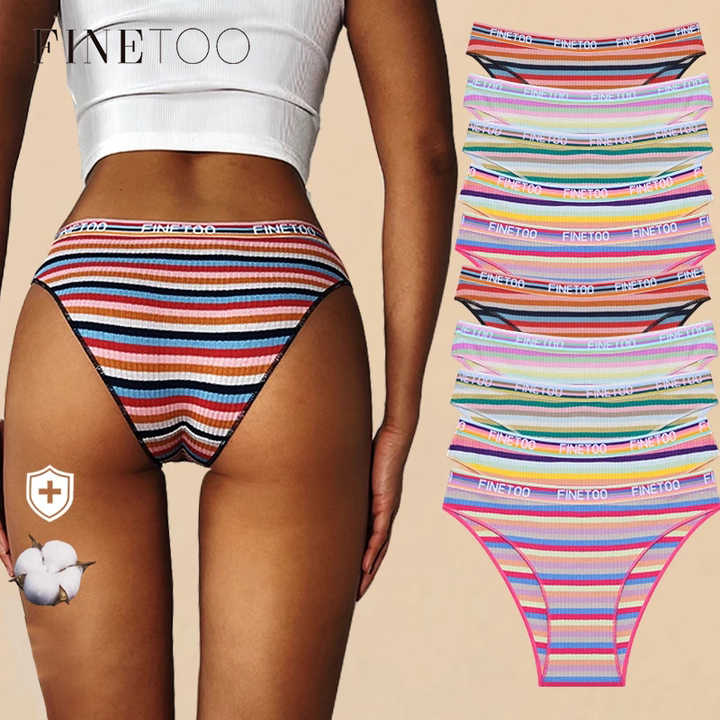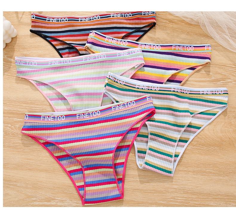 FINETOO slip in cotone a vita bassa da donna mutandine a righe colorate in colori arcobaleno taglia M-XL mutande per ragazze