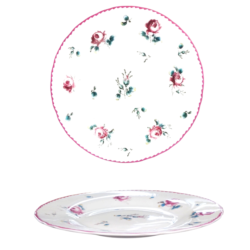 PIATTAZZA PIATTA CON FIORI IN PORCELLANA BIANCA CON DECORAZIONE, DIAMETRO 27 cm