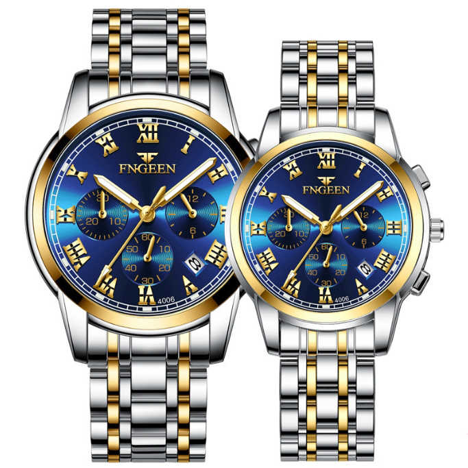 FNGEEN orologio 4006 coppia al quarzo impermeabile luminoso moda Casual in acciaio inossidabile orologio da polso originale per uomo donna regalo