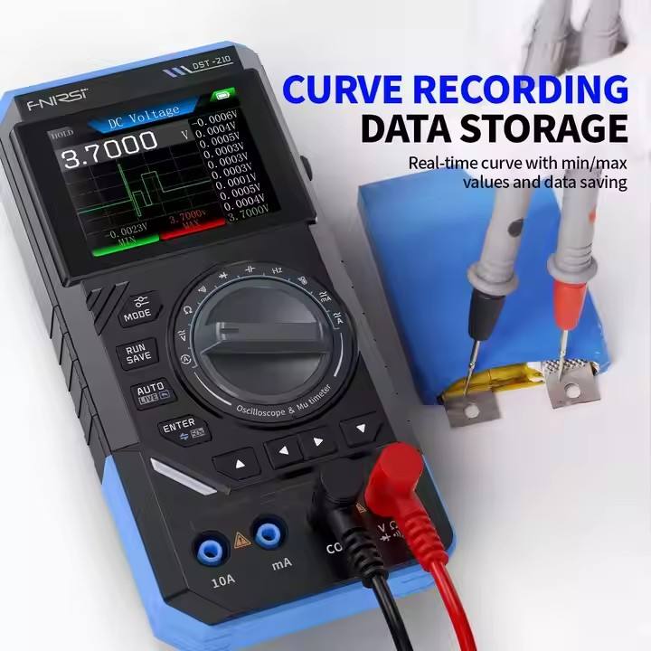FNIRSI DST-210 Oscilloscopio portatile 3-in-1 48MSa/s 10MHz, protezione ±400V, schermo TFT 2,8'' regolabile, batteria 3000mAh