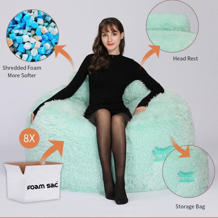 SCHIUMA SAC personalizzabile 4FT-9FT compresso schiuma Faux Pelliccia di nuovo sacchetto di fagioli sedia a sacco grande divano