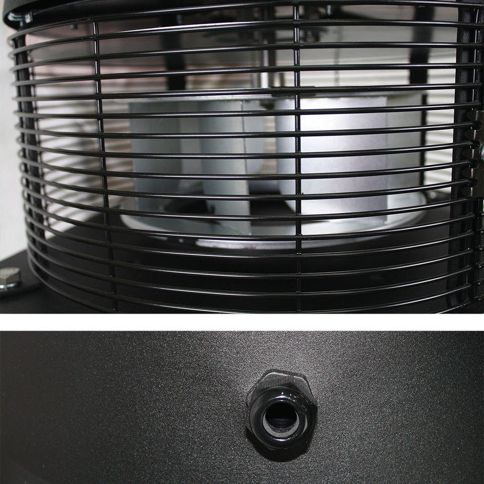 FOCCETA REG centrifugal roof fan for fireplaces & barbecues with airflow controller; 750 m³/h airflow, steel housing, aluminium