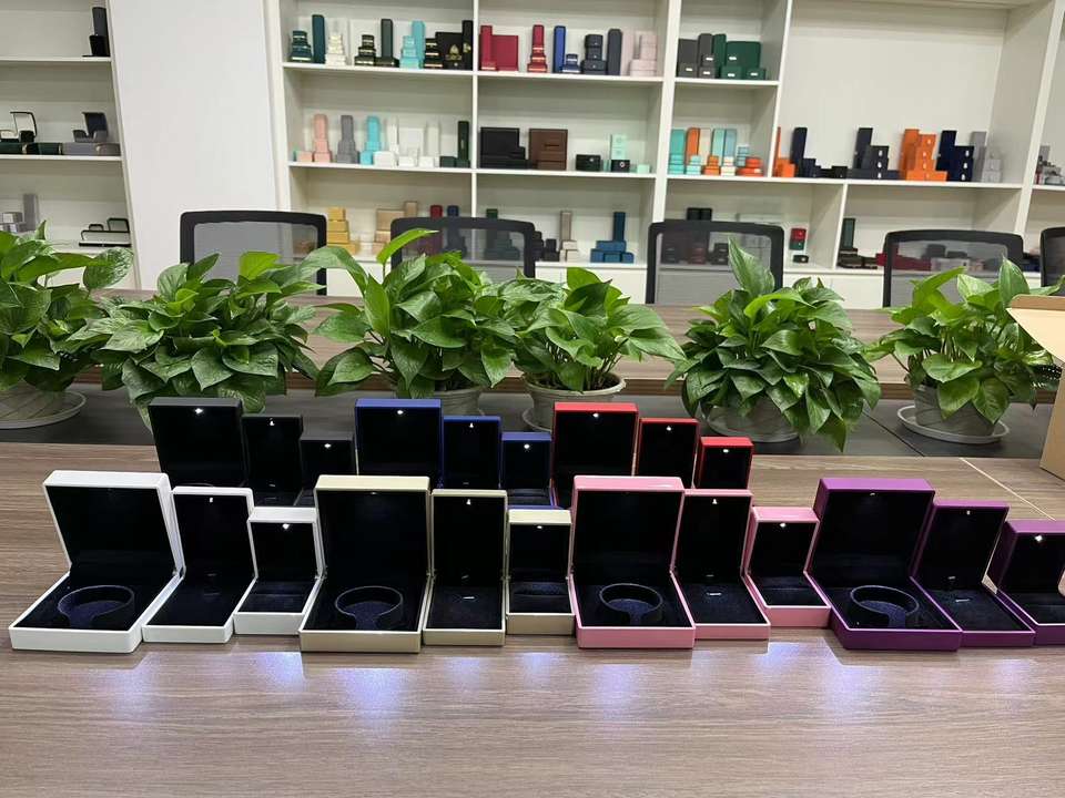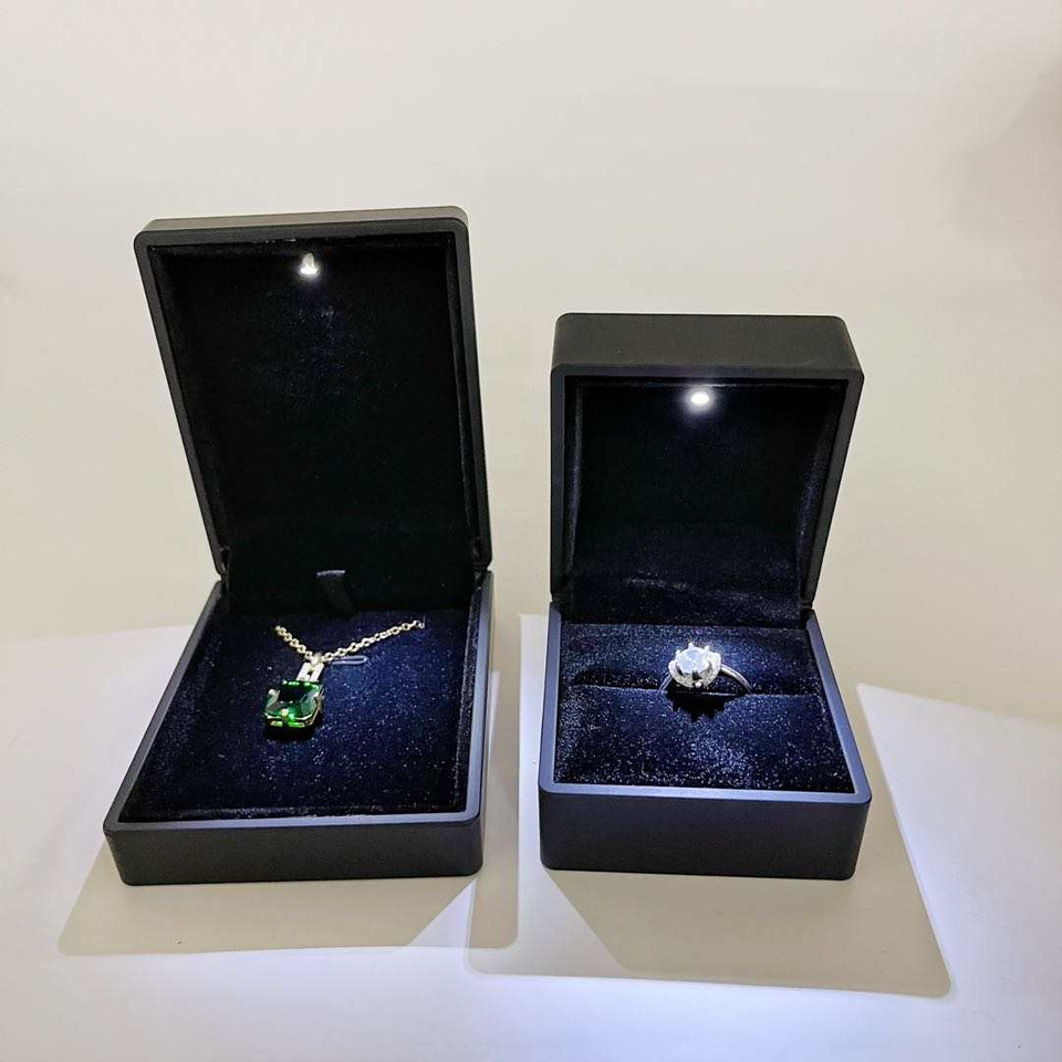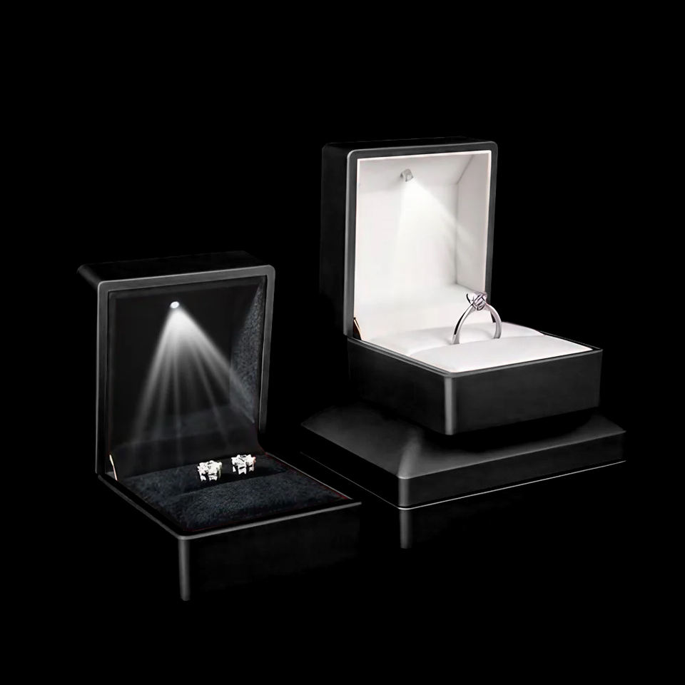 FORTE Led portagioie lacca nera logo serigrafia pacchetto di gioielli a led di lusso scatole ad anello personalizzate portagioie con luci
