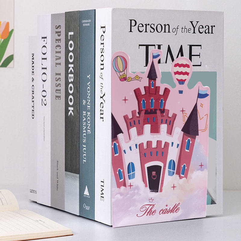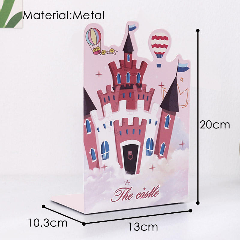 FOSKA 1 Paio di Fermalibri in Metallo Resistente a Forma di Castello Rosa per Riviste, Libri, DVD, Enciclopedie e Libri di Testo