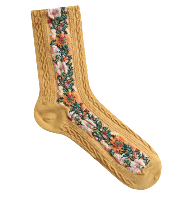 FOYSOCK KOREA Custom Embroidered knit ethnic logo Ankle Oem Design Cotton Custom Boho Crew floral Quality Women's Sports Socks