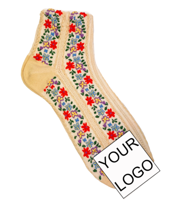 FOYSOCK KOREA Custom floral logo Embroidered Ankle Crew Boho Quality OEM Design Cotton Custom knit ethnic Women's Sports Socks