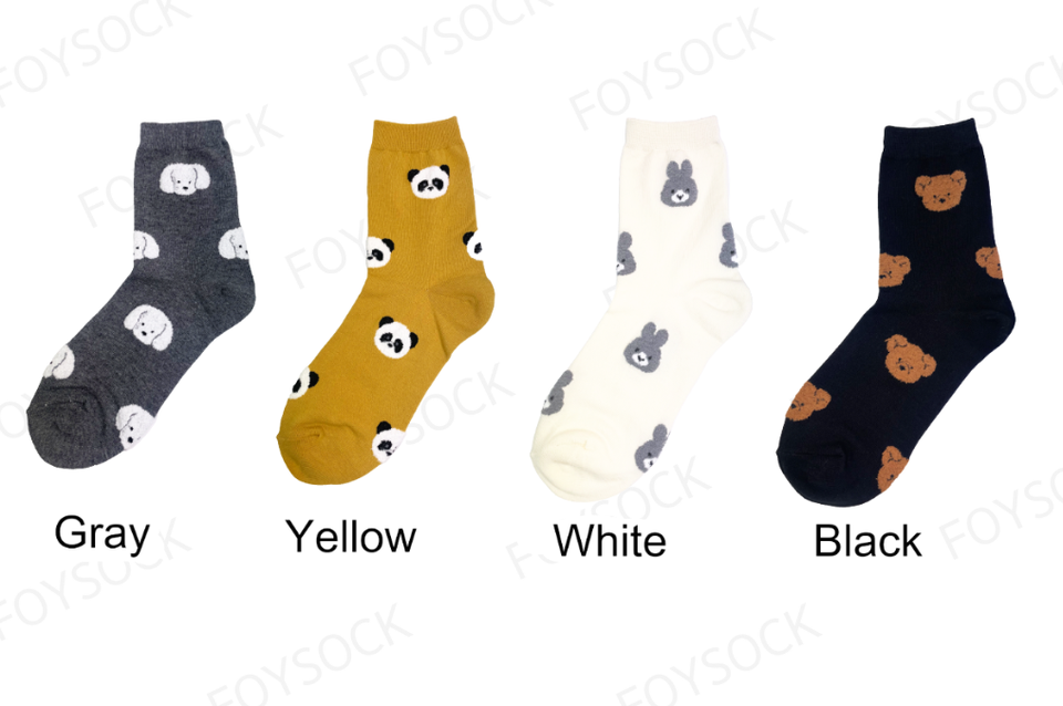 FOYSOCK Korea Custom Quality Women's Ankle Sports Crew Socks Animal Character Novelty Logo OEM Print Design Cotton Custom Socks