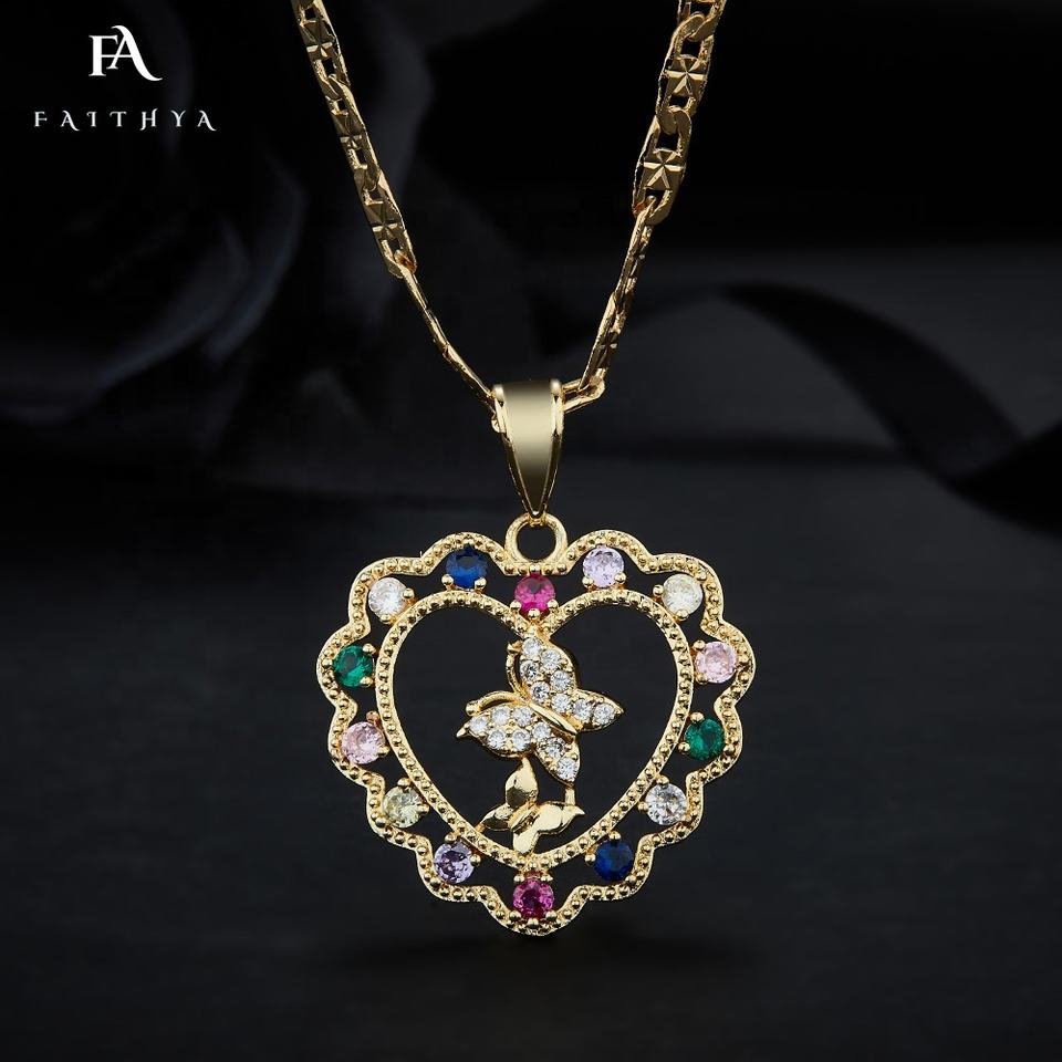 FP1035 Various Types of Personalized Cubic Zirconia Butterfly Oro Laminado 18k Party Mother's Day Gift Pendant Necklace