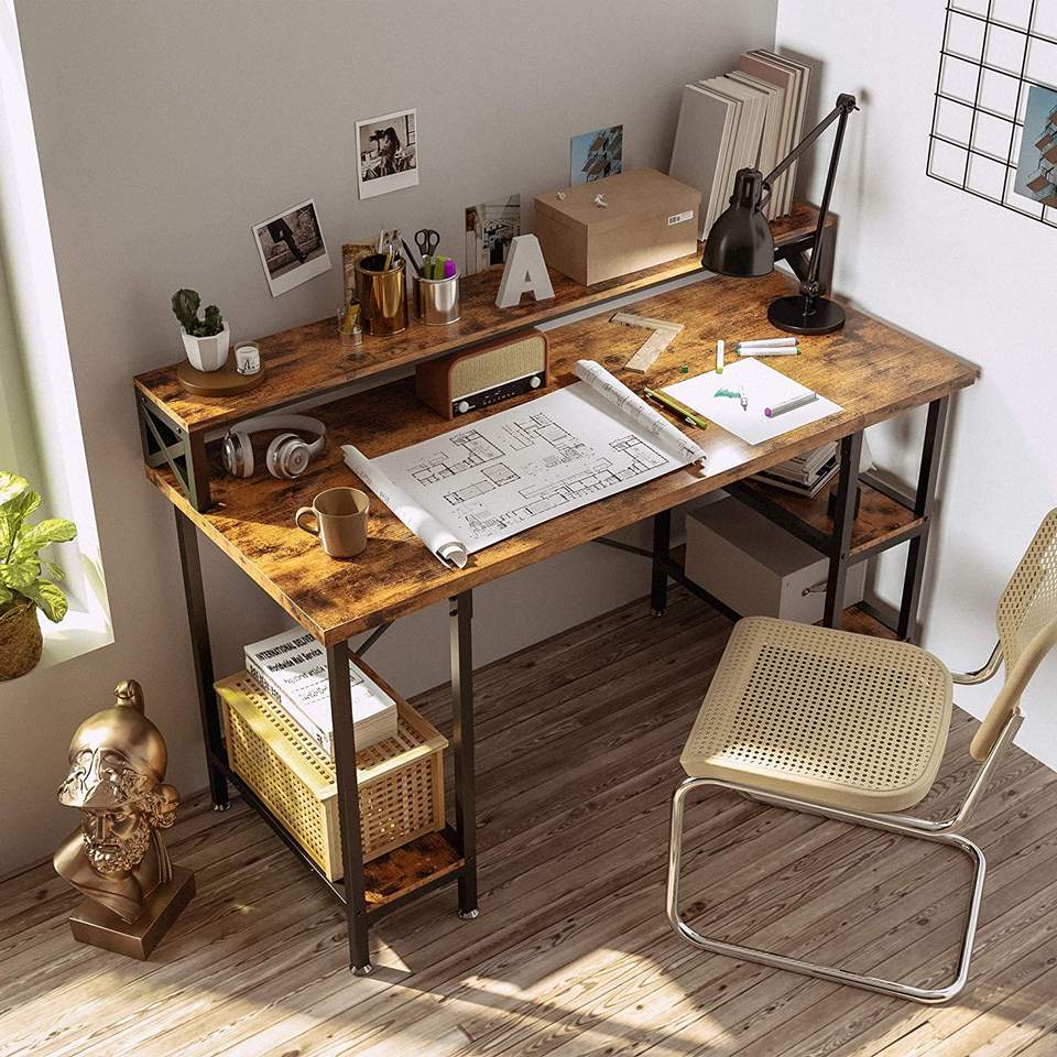 CAMPIONE GRATUITO Scrivania per Computer con Ripiano per Stampante e Monitor, Mensola Portaoggetti, Tavolo da Studio e Scrittura per Casa e Ufficio