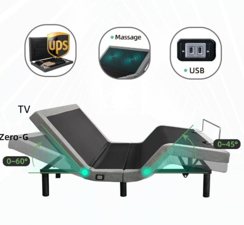 Foldable, Massage, Storage , Reclining, USB Charging Ports, Zero-G, Head and Foot Incline, Adjustable Bed Legs, Wireless Remote Control, Shipping via FedEx or UPS, Anti-Snorefeature