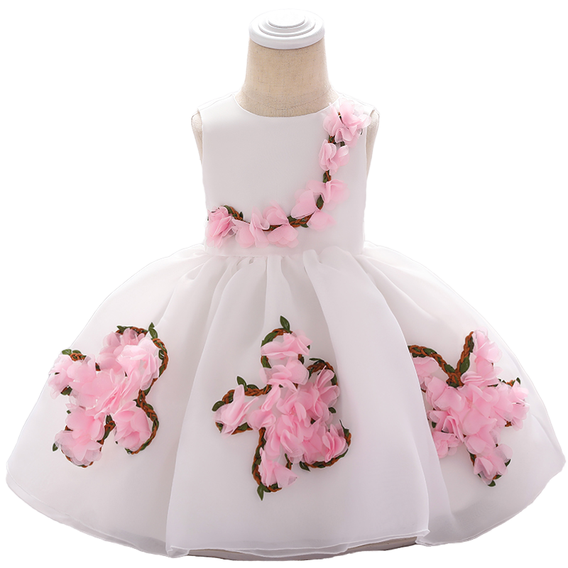 FSMKTZ Children's Formal Satin Frock Floral Pattern First Communion and Baptism Dress for Girls Summer Party Wear L1883XZ