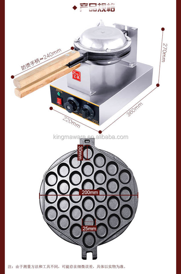FY-6 Electric Stainless Steel Commercial Nonstick Bubble Waffle Maker Iron Creates Bubble Shaped Waffles