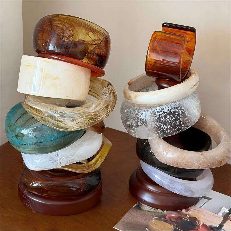 Bracciale Rigido Grande FY in Acrilico, Braccialetto Irregolare Punk in Resina, Polsiera Larga Geometrica, Bracciale Statement
