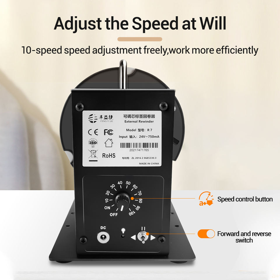 Etichettatrice da Tavolo FYJ R7 con Riavvolgitore Regolabile da 185mm, 8W, Funzionamento Portatile, Macchina Automatica ad Alta Velocità
