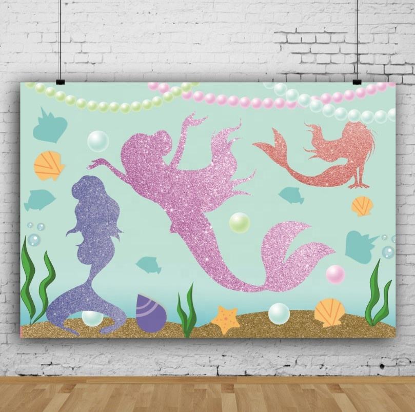 Tessuto Sullo Sfondo Sotto Il Mare Little Mermaid Oceano di Trasporto Marittimo Festa Di Compleanno della Bandiera Photo Studio Stand Fotografia di Sfondo