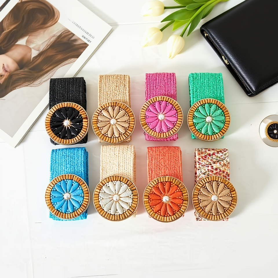 Cintura in tessuto da 5 cm con fibbia rotonda a forma di ananas, cinturino in similpelle PP per donna, accessori moda