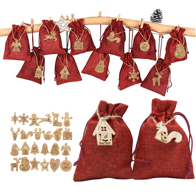 Fabric Christmas Advent Calendar Garland Hanging Gift Bags Advent Calendar Bags
