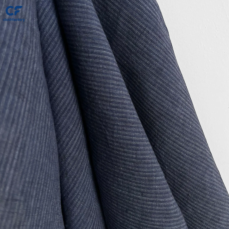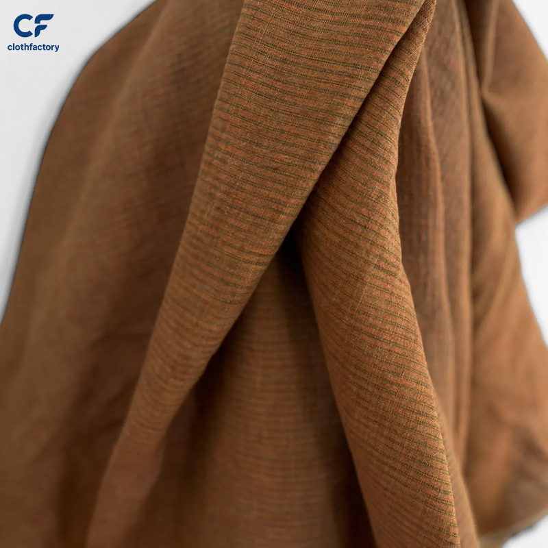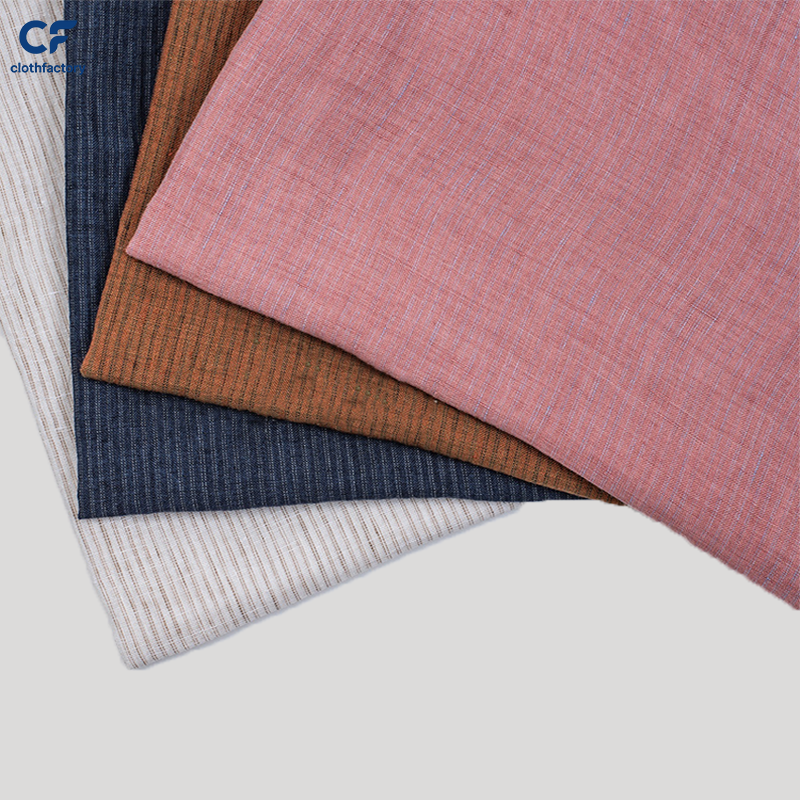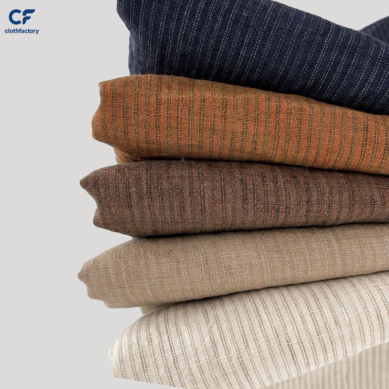 Tessuto in Lino a Righe Colorate Arancione Blu, Lino a Righe Sottili Blu Navy, Morbido Tessuto Effetto Stone-washed per Camicie e Abiti
