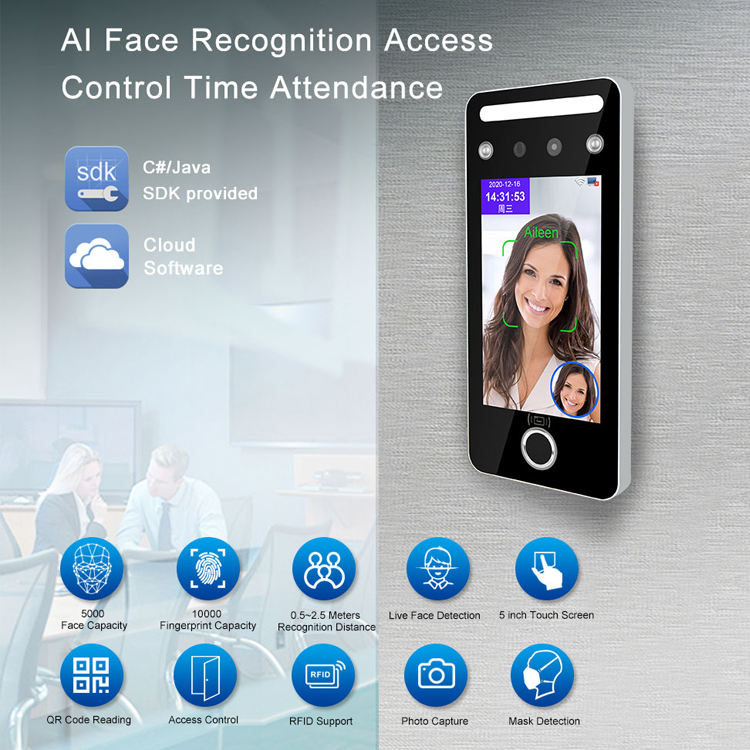 Tablet con Riconoscimento Facciale, Macchina per Rilevamento Presenze con Riconoscimento AI, Senza Contatto, SDK Gratuito per Controllo Presenze Lavorative