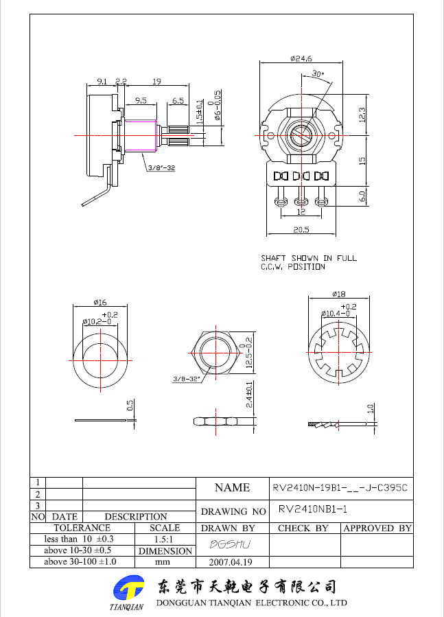 24mm rotary potentiometer
