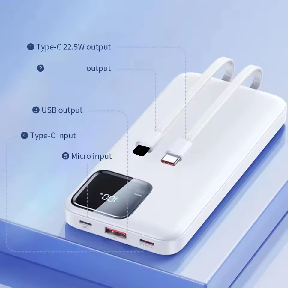 Power Bank da 22.5W 10000mAh con Ricarica Rapida, Batteria Esterna Portatile con Cavo
