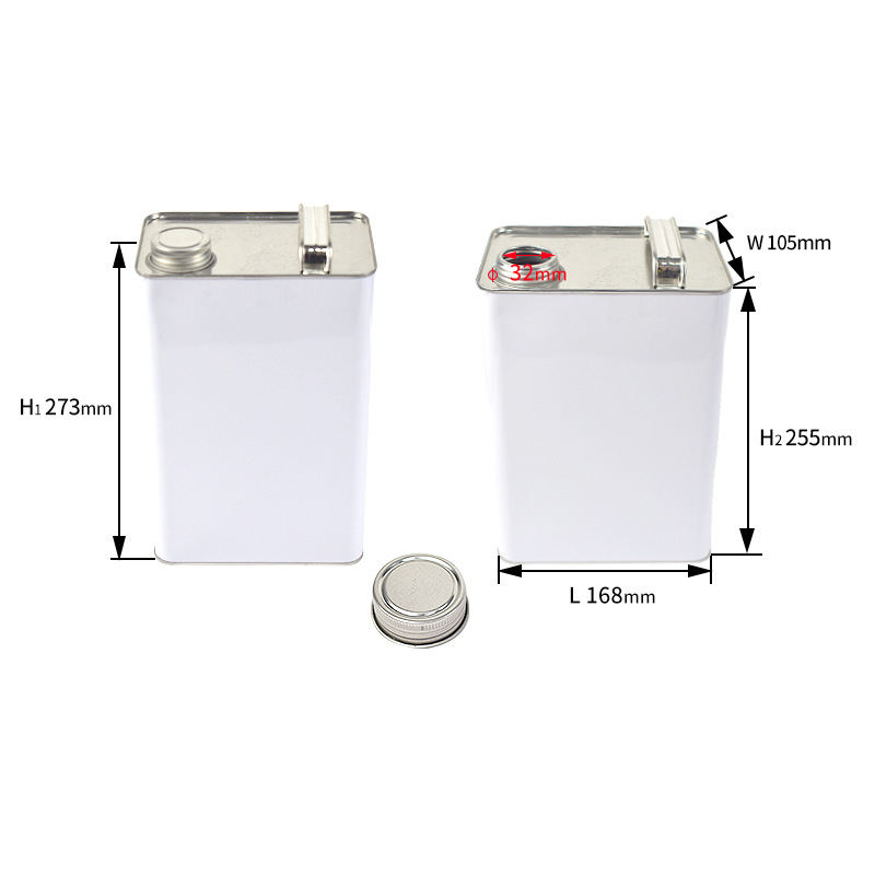 Fabbrica 4L quadrato bianco barile olio di vernice latta chimica tanica tanica con ferro vite ugello coperchio ferro maniglia