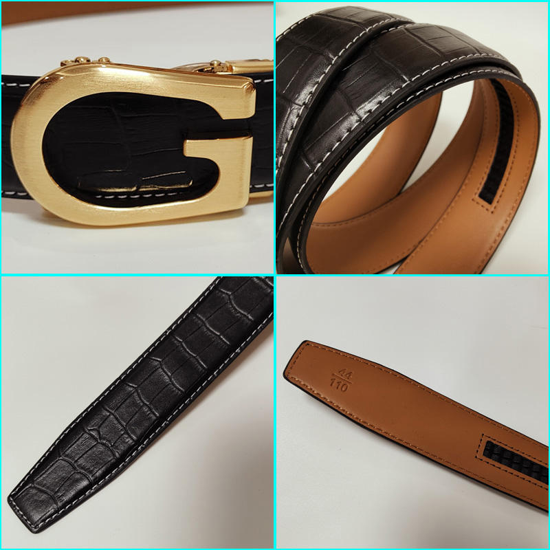 Cinture da uomo di lusso in vera pelle con fibbia automatica dorata e argentata, marchio famoso di stilisti, modello G