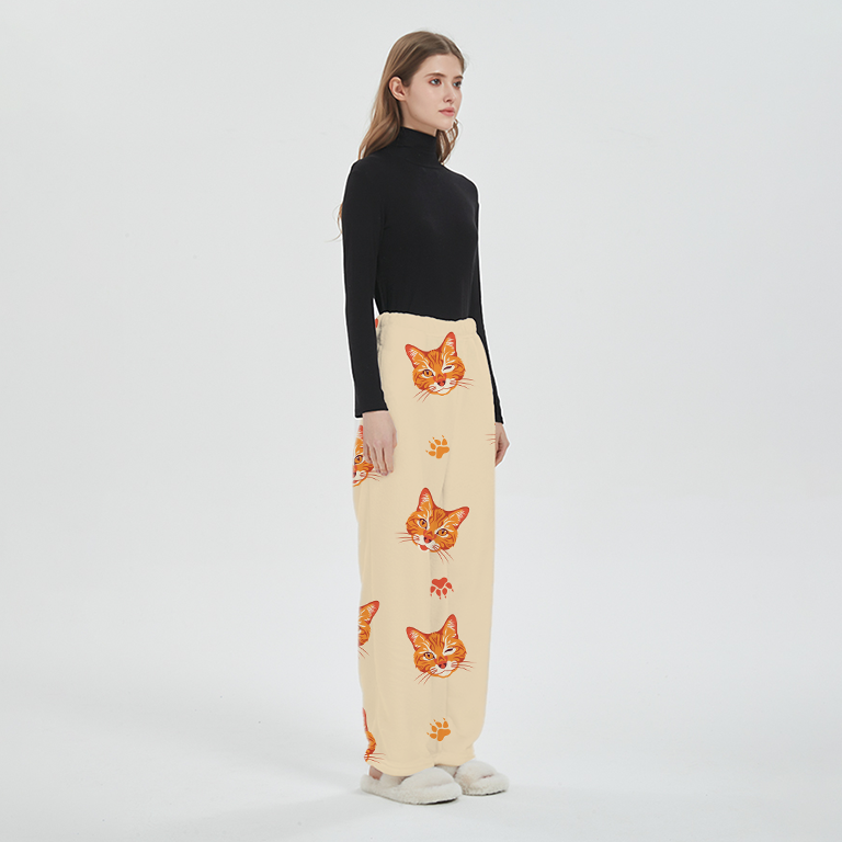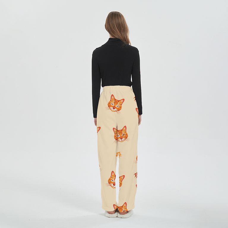 Factory Cartoon Cat Plus Thick Fleece Pajama Pants for Women Kids Autumn Winter Flannel Home Wear Pants