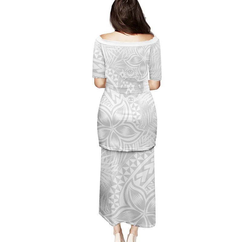 Puletasi Tonga Bianco Personalizzato a Prezzo Conveniente, Senza Spalline, Stampa Floreale, Motivo Tropicale Polinesiano