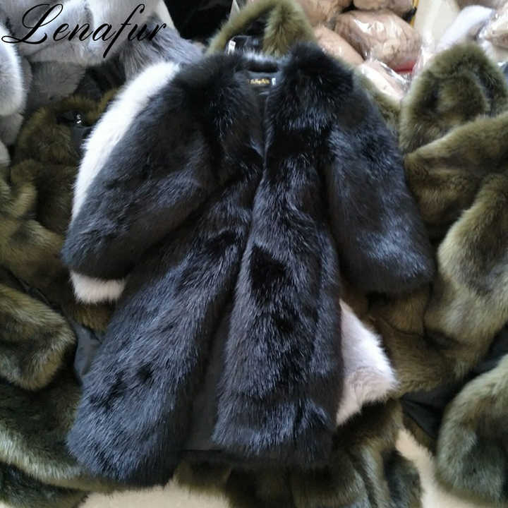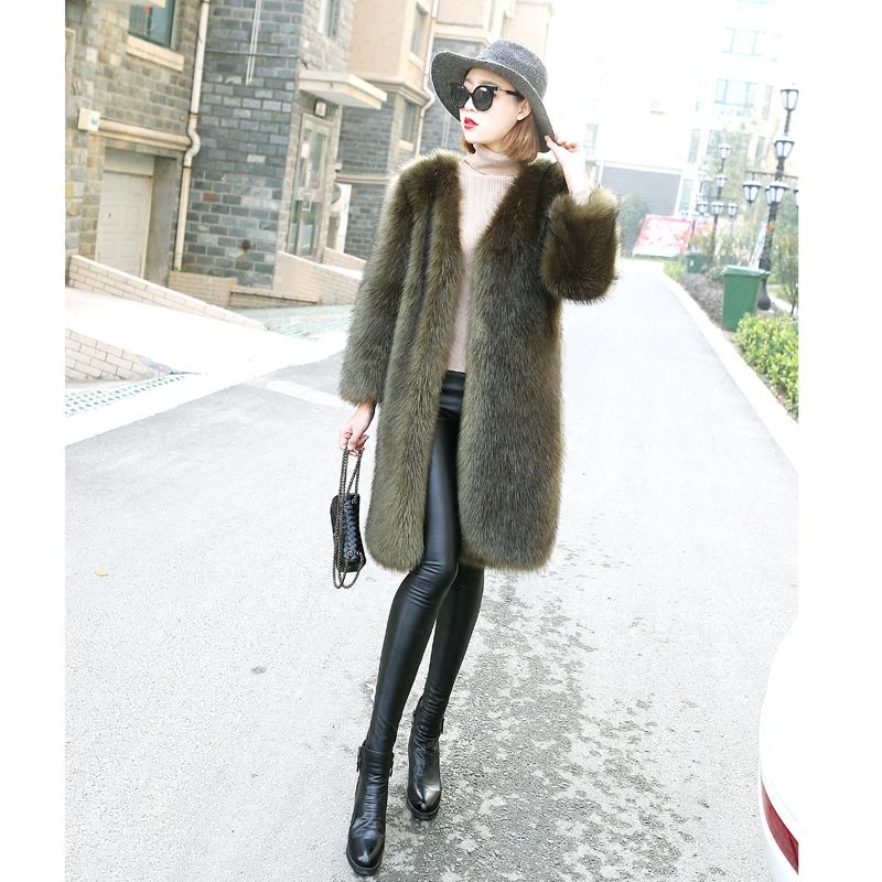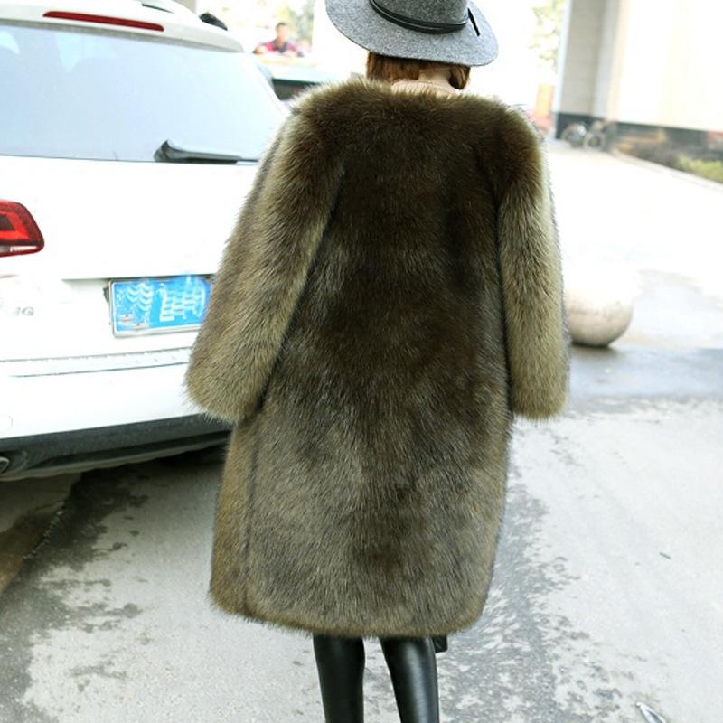 Cappotto in Finta Pelliccia di Volpe Nero Lucido Invernale, Sottile e Caldo, a Prezzo Conveniente, per Donna